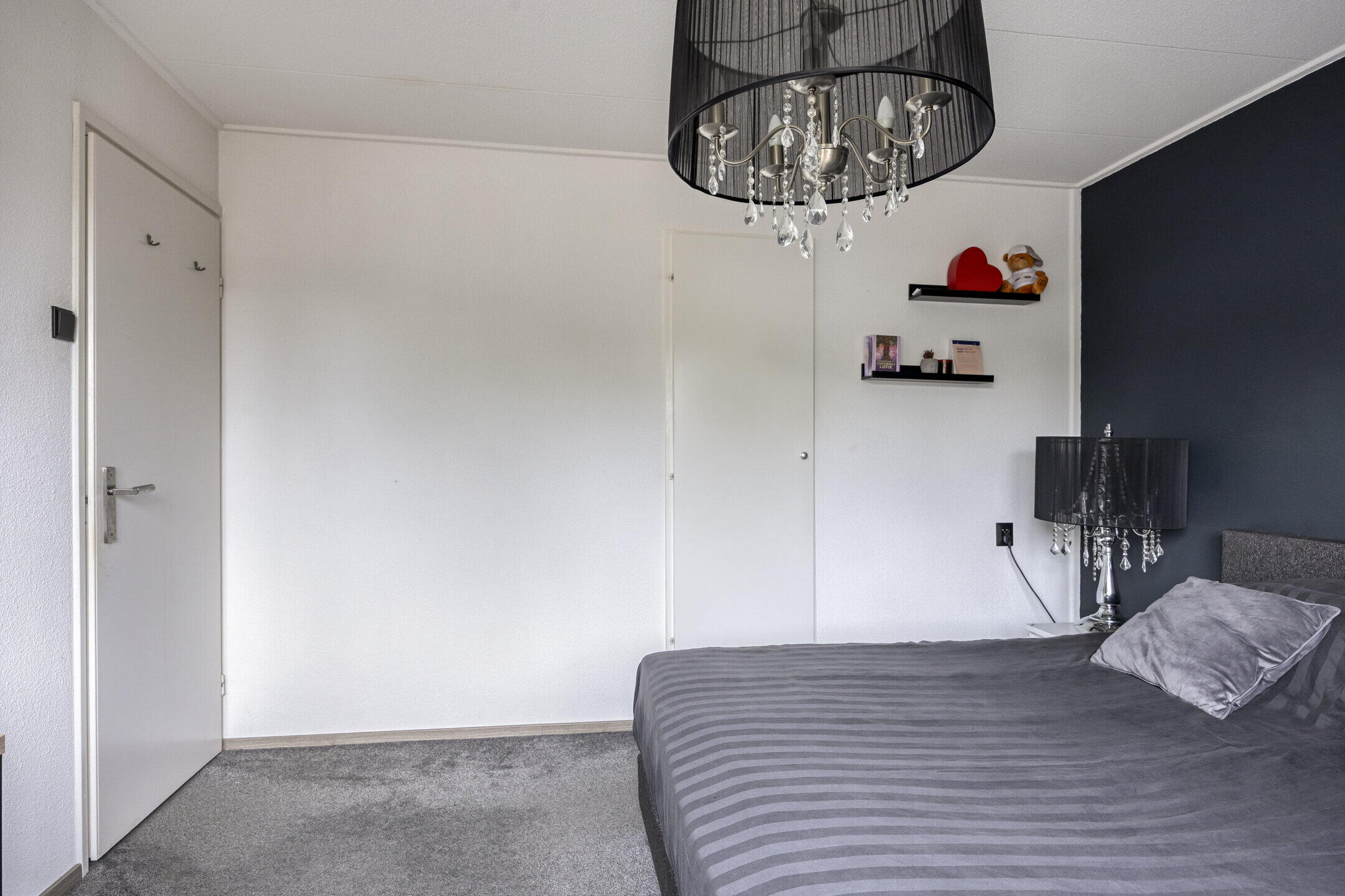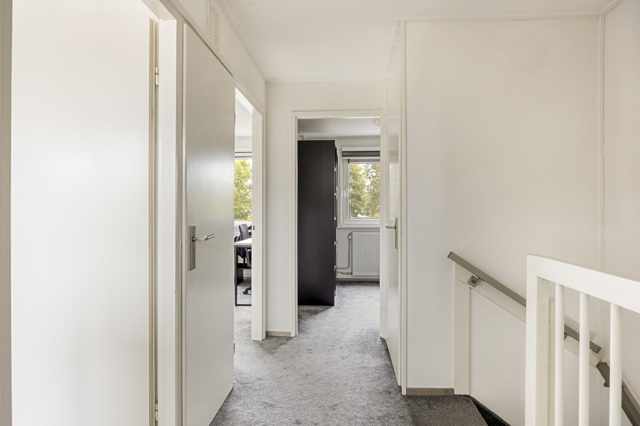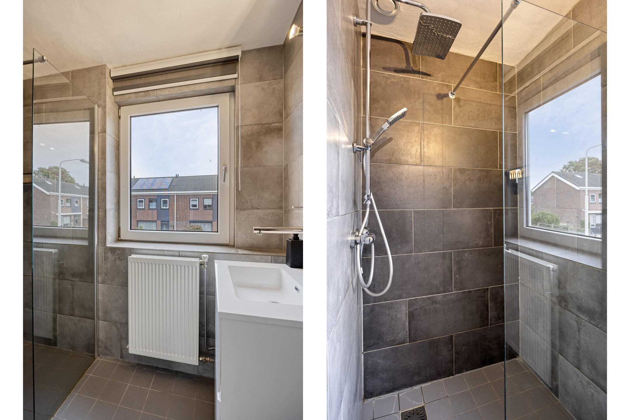Vanaf de overloop vind je drie slaapkamers, waarvan één momenteel als walk-in closet is ingericht. Alle kamers beschikken over draai-/kiepramen en zijn voorzien van tapijtvloer. Op de overloop is bovendien een handige witgoedkast aanwezig. De moderne, licht betegelde badkamer is ingericht met een douche en een wastafelmeubel. Via de vaste trap bereik je de tweede verdieping.