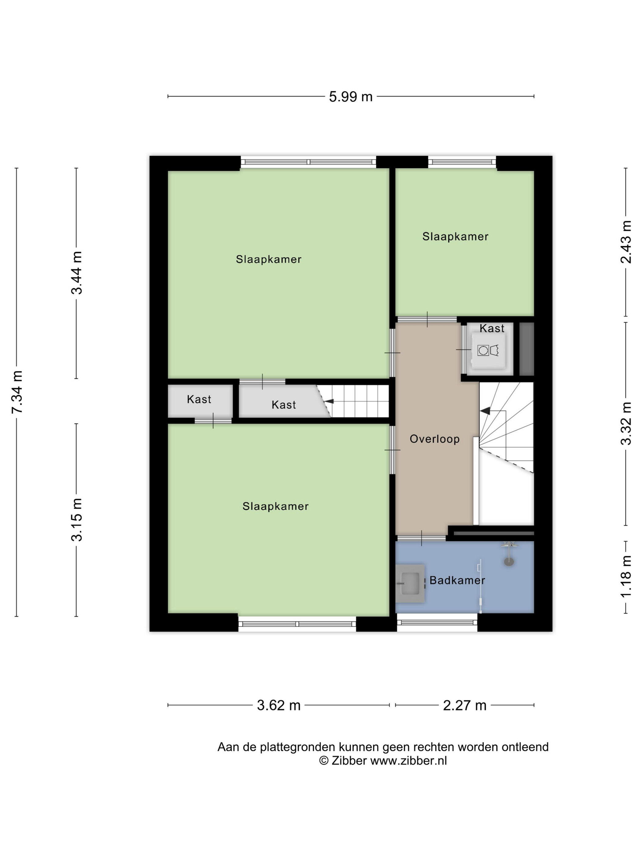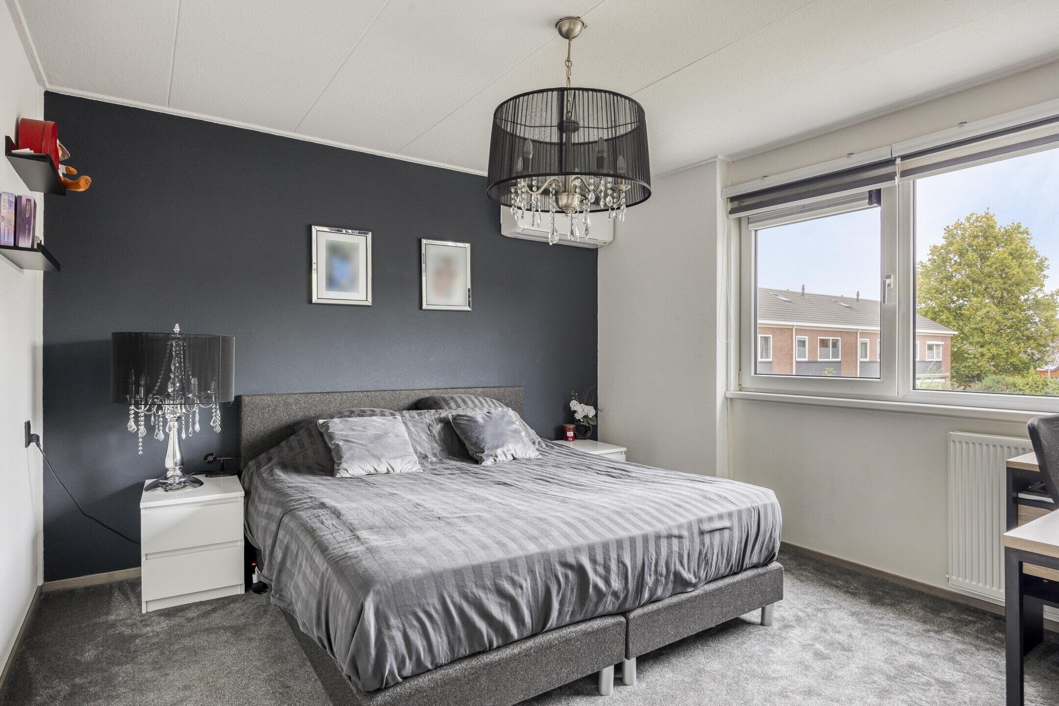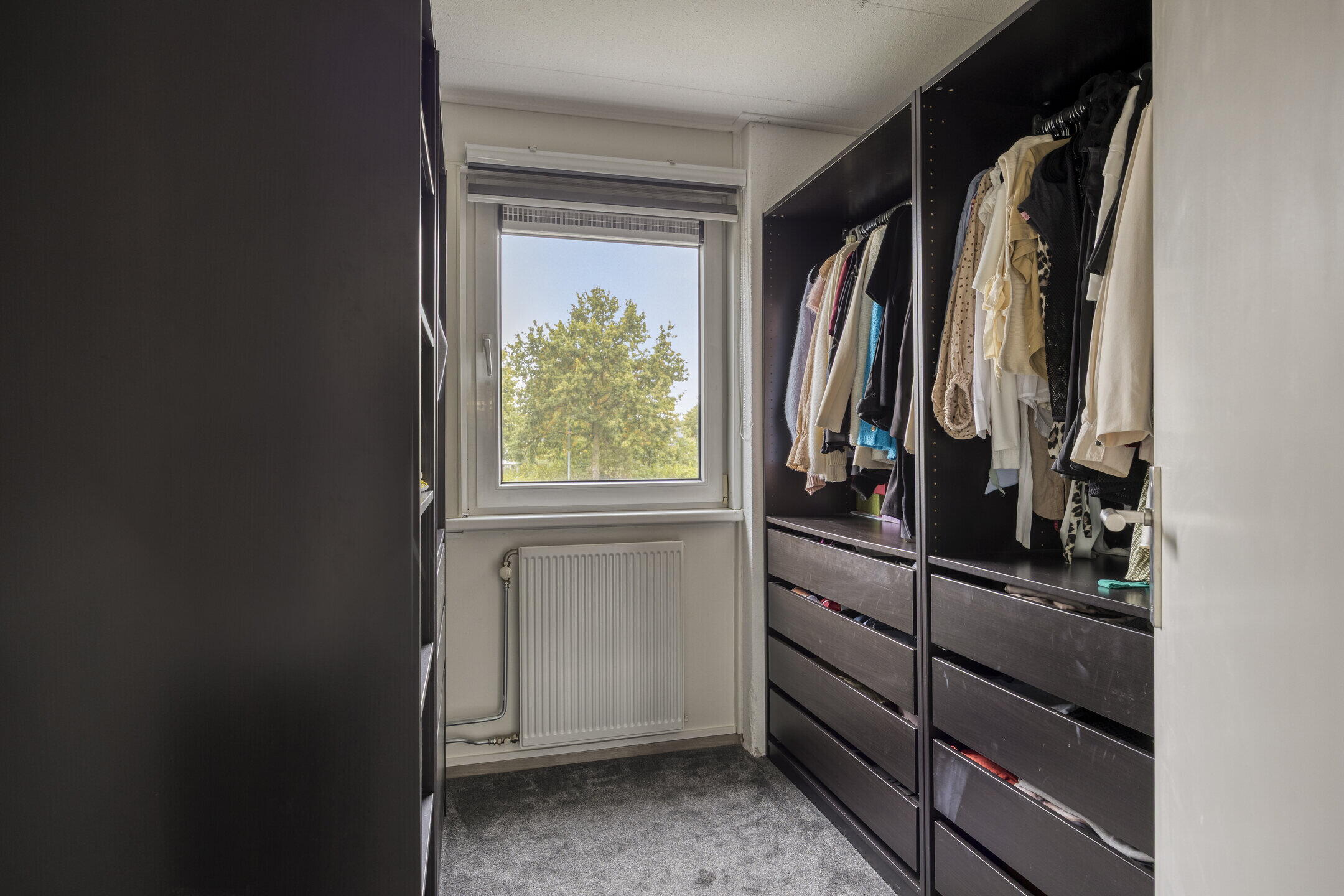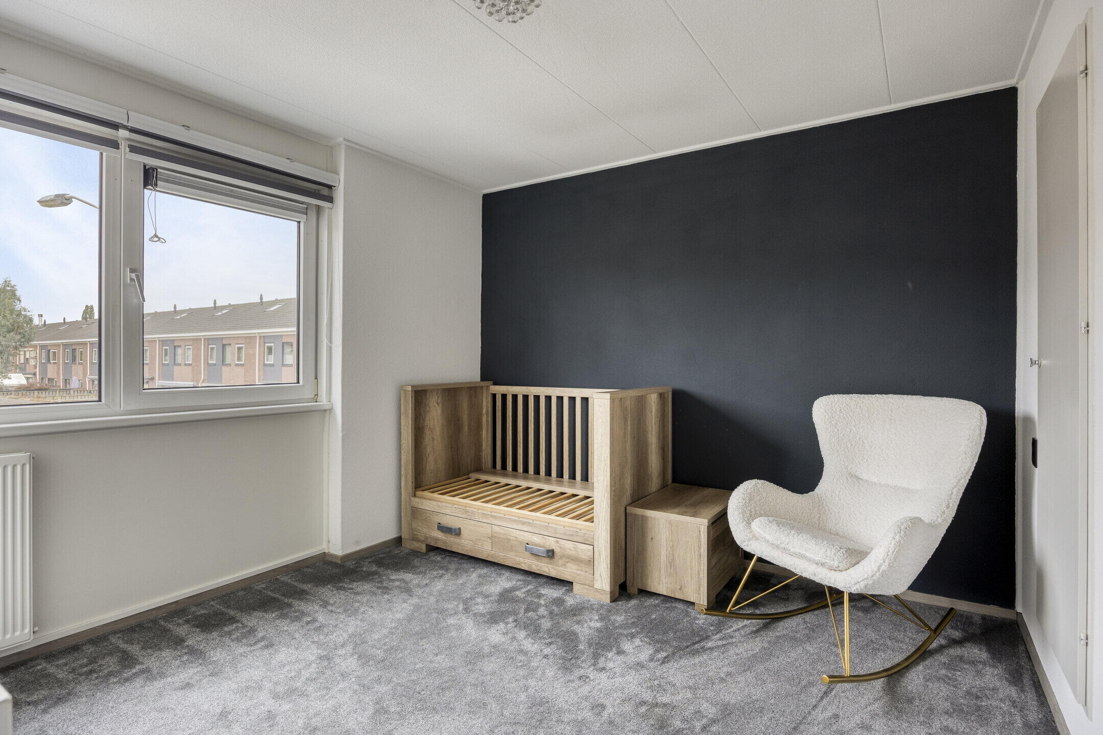 Vanaf de overloop vind je drie slaapkamers, waarvan één momenteel als walk-in closet is ingericht. Alle kamers beschikken over draai-/kiepramen en zijn voorzien van tapijtvloer. Op de overloop is bovendien een handige witgoedkast aanwezig. De moderne, licht betegelde badkamer is ingericht met een douche en een wastafelmeubel. Via de vaste trap bereik je de tweede verdieping.
