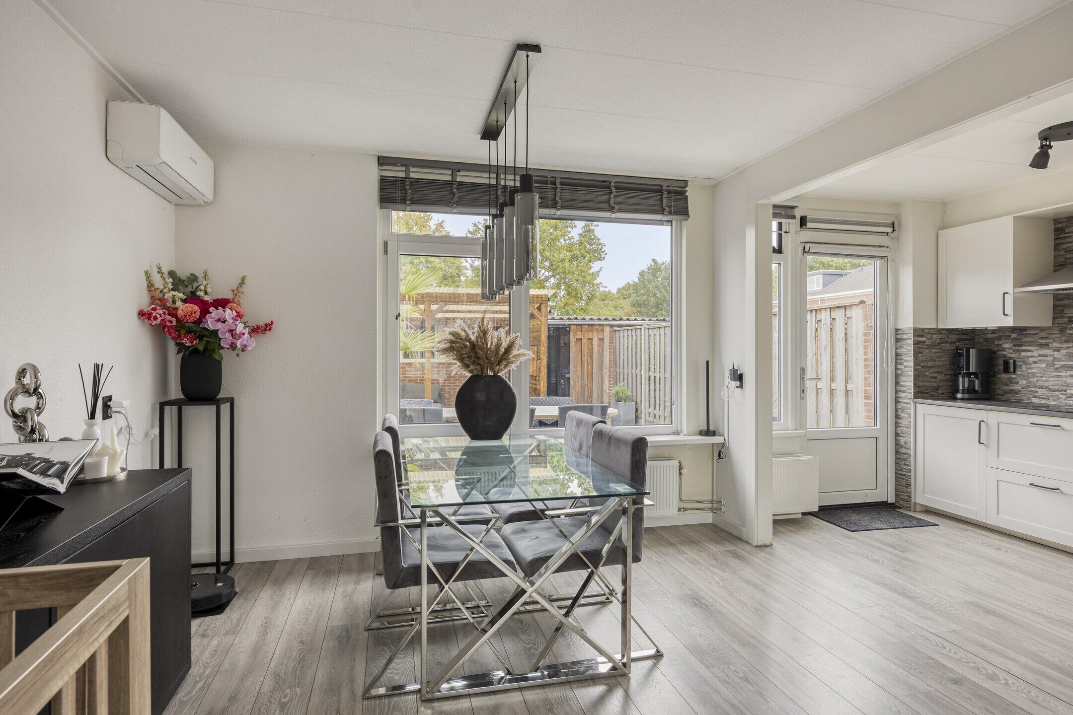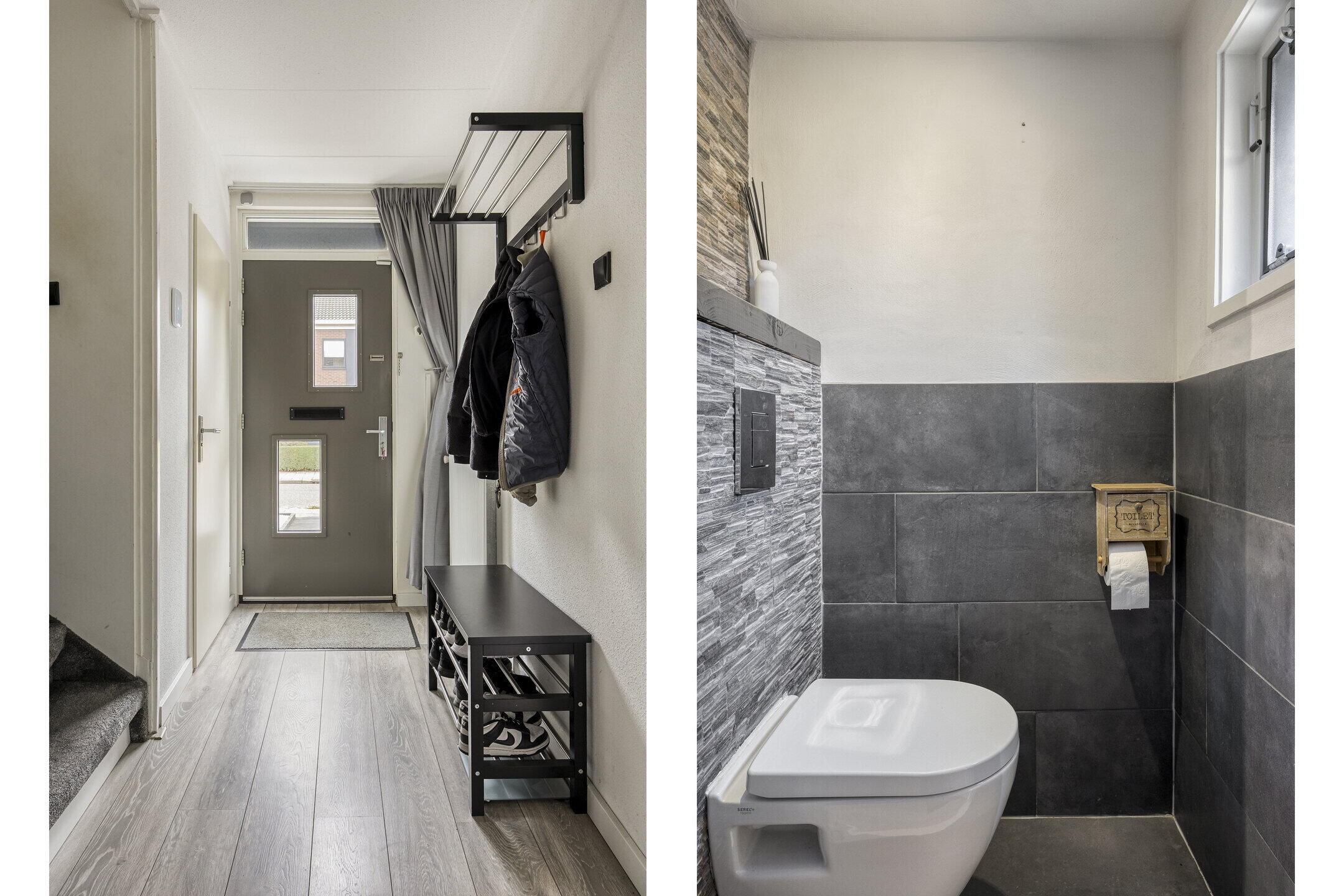 Je stapt binnen in een ruime hal met garderobe, vernieuwde meterkast, trapopgang en de nette toiletruimte met daglichttoetreding. De lichte doorzonwoonkamer heeft grote ramen aan zowel de voor- als achterzijde, waardoor het zonlicht de hele dag prettig binnenvalt. Er is ruimte genoeg voor een comfortabele zithoek én een royale eettafel. Daarnaast is deze ruimte voorzien van een airco. De open keuken ligt aan de tuinzijde en is uitgerust met inbouwapparatuur, waaronder een koelkast, combi magnetron, inductiekookplaat, afzuigkap en vaatwasser. Via de keukendeur stap je zo de achtertuin in. De gehele begane grond is afgewerkt met een laminaatvloer.